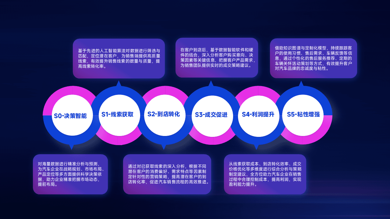 通过拓宽潜在客户来源、、优化线索分配并提高到店转化率,,,以增强销售效率。。。。同时,,利用线索数据不断优化分析模型,,有效提升转化率,,扩大营销影响力。。